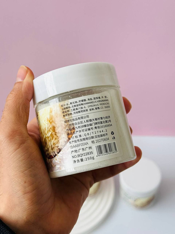 این اسکراب با ترکیب نمک دریایی و برنج، سلولهای مرده پوست را بهطور مؤثر از بین میبرد و سطح پوست را صاف و نرم میکند.
