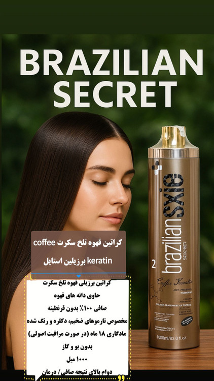 کراتین قهوه تلخ سکرت Brazilian Secret Coffee Keratin، با ترکیب منحصربهفرد دانههای قهوه و فرمولاسیون برزیلی، راهکاری ایدهآل برای دستیابی به موهایی صاف، سالم، درخشان و پرحجم است. این محصول، تجربهای لوکس از زیبایی و مراقبت مو را با تضمین صافی 100%، ماندگاری فوقالعاده و راحتی استفاده (بدون بو و قرنطینه) ارائه میدهد. اگر به دنبال بهترینها برای موهای ضخیم، رنگ شده یا دکلره خود هستید، این کراتین انتخابی است که شما را شگفتزده خواهد کرد.