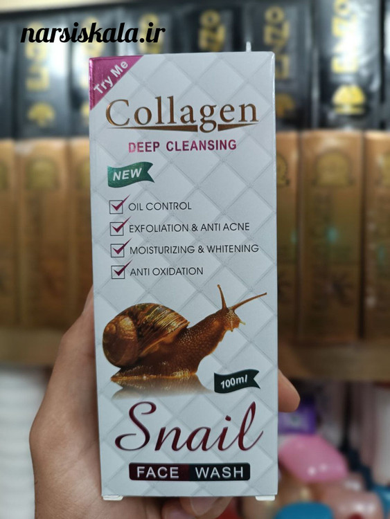 فوم شستشوی صورت کلاژن حلزون (فیس واش) 100 میل یکی از بهترین فوم های شستشو صورت موجود در بازار است. که به صورت عمیق پوست را از انواع آلودگی ها و مواد آرایشی باقی مانده بر روی پوست صورت پاک می کند. و باعث روشن تر شدن پوست صورت می شود، زیرا سلول های مرده پوست را از بین می برد. همچنین حاوی عصاره ترشحات کلاژن ساز حلزون می باشد. که این عصاره به تحریک کلاژن سازی در پوست صورت کمک می کند. و مانع از ایجاد چین و چروک در پوست صورت می شود.
