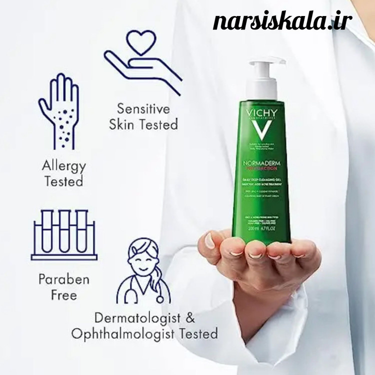 محصولی مناسب برای پاکسازی روزانه پوستهای چرب و مستعد جوش است. یک ژل شستشوی روزانه عمیق برای پوست چرب و آکنهای است که توسط برند معتبر و برجسته Vichy تولید شده است.