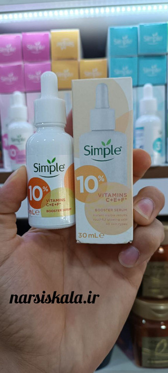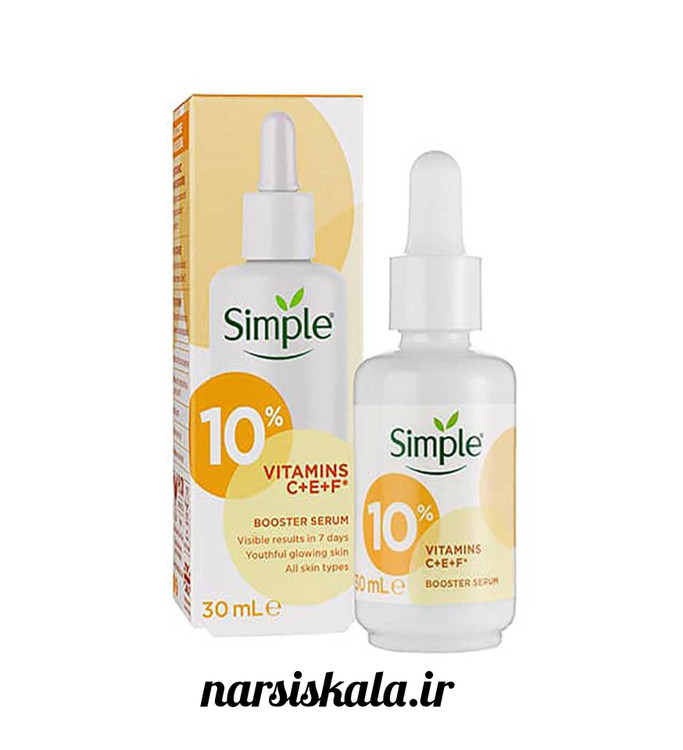 سرم روشن کننده سیمپل simple حاوی ویتامین C+E+F حجم ۳۰ میل