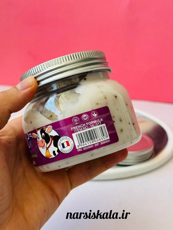 1. حاوی عصاره شیر گاو: این اسکراب حاوی شیر گاو است که غنی از ویتامینها، پروتئینها و اسیدهای چرب مفید است. شیر گاو به پوست رطوبت میبخشد و آن را تغذیه میکند، بهویژه برای پوستهای خشک و حساس.