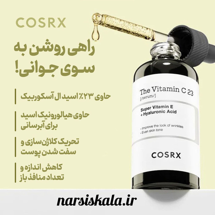 سرم ویتامین سی کوزارکس 23% ترکیبی از اثرات روشن و درخشان کنندگی اسید آسکوربیک به همراه خواص آنتی اکسیدانی، رطوبت رسانی، تسکین دهندگی و تقویت کنندگی ویتامین E، آلانتنونین و هیالورونیک اسید می باشد. سرم ویتامین سی COSRX گزینه ای موثر برای رفع هایپر پیگمنتاسیون، یکدستی پوست و مبارزه با علائم پیری پوست می باشد. این ترکیب با عدم ایجاد تحریک گزینه ای مناسب برای پوست های حساس می باشد.