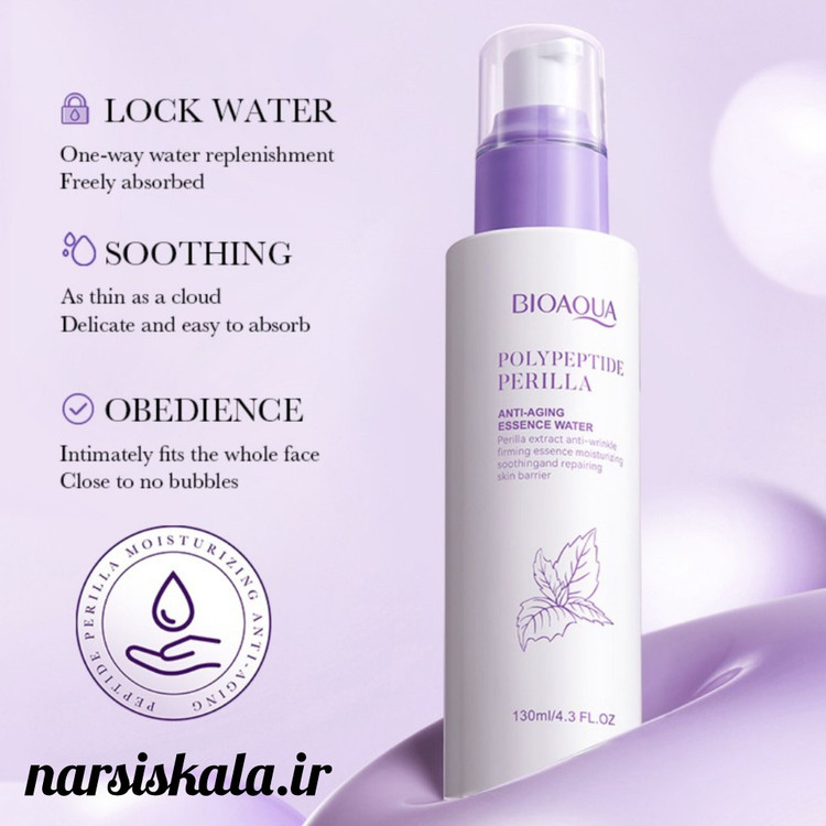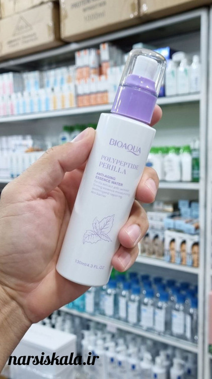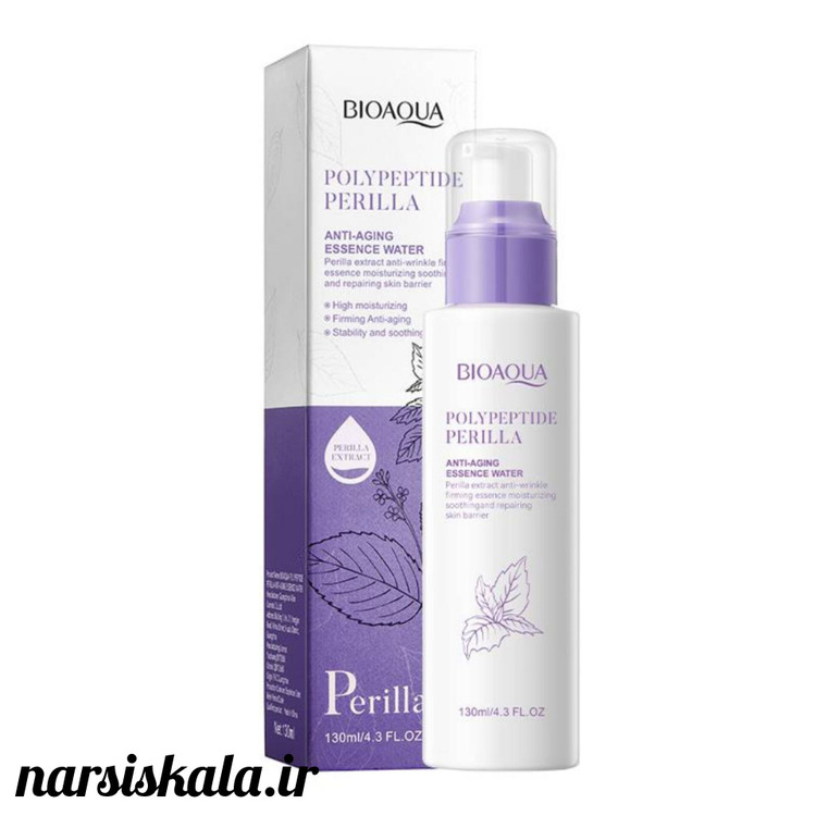 تونر تغذیه کننده پوست و ضد پیری پریلا پلی پپتاید بیوآکوا حاوی ۳ ماده قدرتمند در جهت تغذیه و کاهش چین و چروک پوست است.
