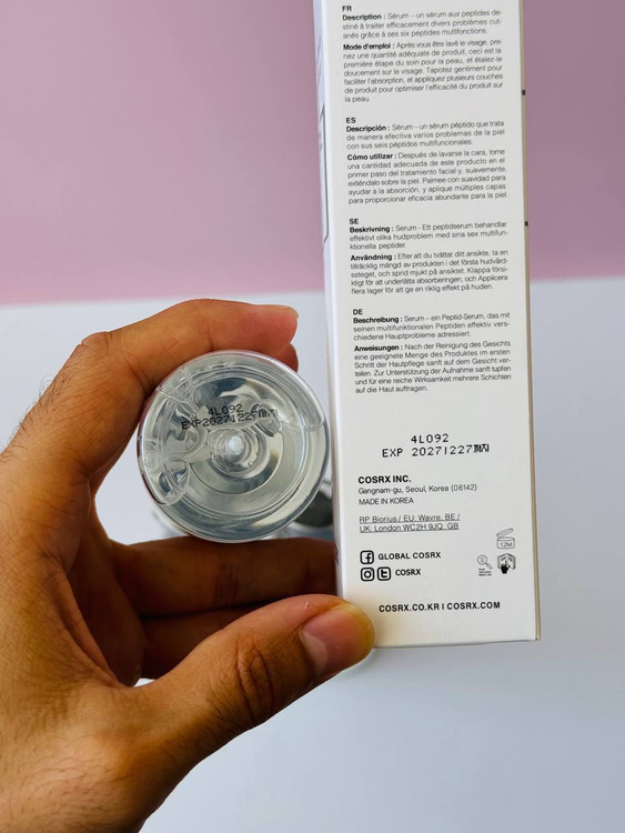 این سرم بافت بسیار سبک و غیرچرب دارد که به سرعت جذب پوست شده و هیچ حس سنگینی یا چربی روی پوست باقی نمیگذارد. همین ویژگی آن را برای استفاده روزانه، حتی زیر آرایش، کاملاً مناسب ساخته است. سرم ۶ پپتاید COSRX محصولی با کیفیت بالا و استاندارد است که در بستهبندیهای بهداشتی عرضه میشود و کد بچ (Batch Code) برای اطمینان از اصالت آن روی محصول درج شده است.