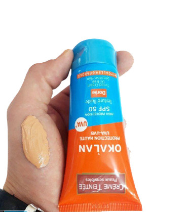 ضد آفتاب اوکالان OKALAN حالت کرم پودری دارد، همچنین رنگ این ضد آفتاب بژ طبیعی می باشد. و می توان از آن به عنوان کرم پودر استفاده کرد.